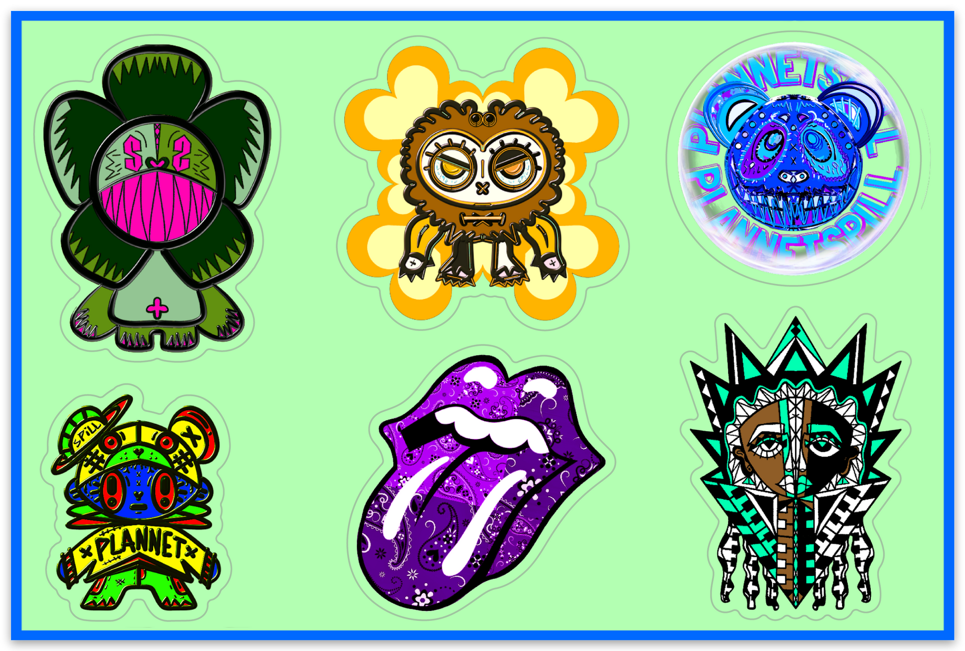Choice of an assorted Sobear sticker sheet, or a a sheet containing a mixture of characters and symbols from PLANNETSPILL!